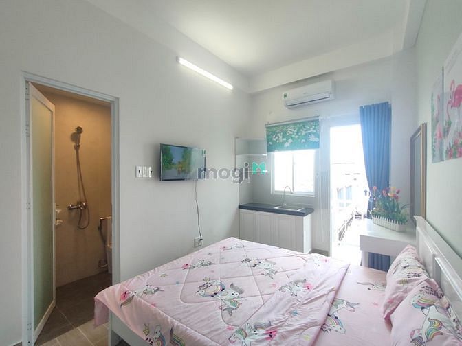 - Nội thất đầy đủ: Giường, nệm, tivi, tủ lạnh, máy lạnh, bàn ghế, máy giặt riêng trong phòng, bếp,..