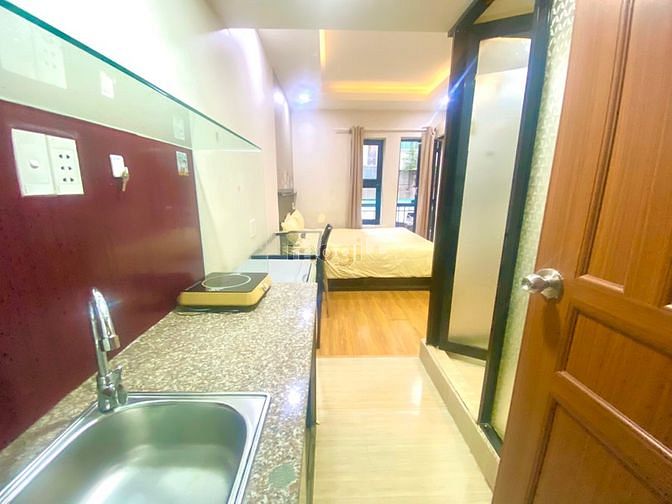 - Phòng trang bị đầy đủ các nội thất như: Giường nệm, máy lạnh, tủ lạnh, tủ áo quần, bàn trang điểm, thiết bị vệ sinh cao cấp…tông màu sáng, sang trọng và đặc biệt là tất cả còn mới 100%