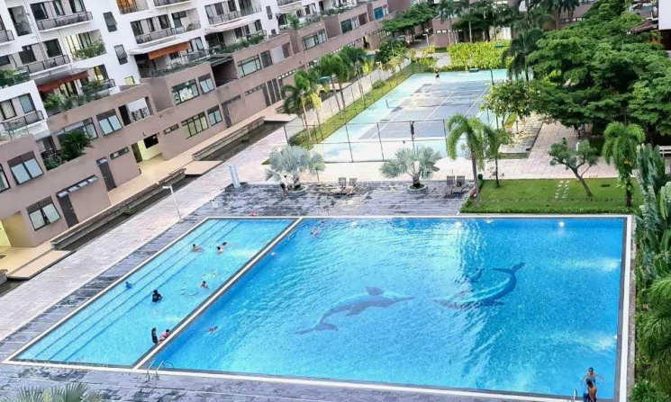- View hồ bơi và đường Tôn Dật Tiên, sân vườn rộng, hướng Đông Nam.
