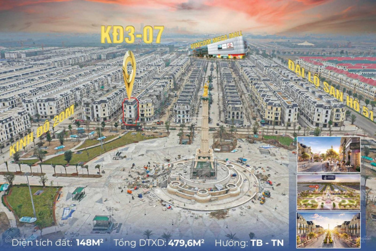 - Diện tích: 213m2, mặt tiền rộng, 4 mặt thoáng view quảng trường, phố đi bộ.