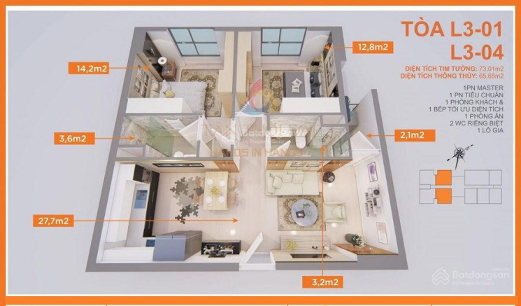 + Căn 2 phòng ngủ + 1 đa năng diện tích 84m2 giá chỉ từ 3 tỷ (nội thất cơ bản).