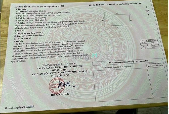 - Đợt 4: Khi cấp giấy CN QSDĐ thanh toán 10% GTHĐ.