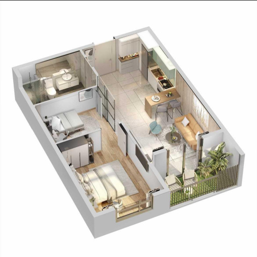Căn 2PN: 69 - 75m2 giá 2 tỷ.