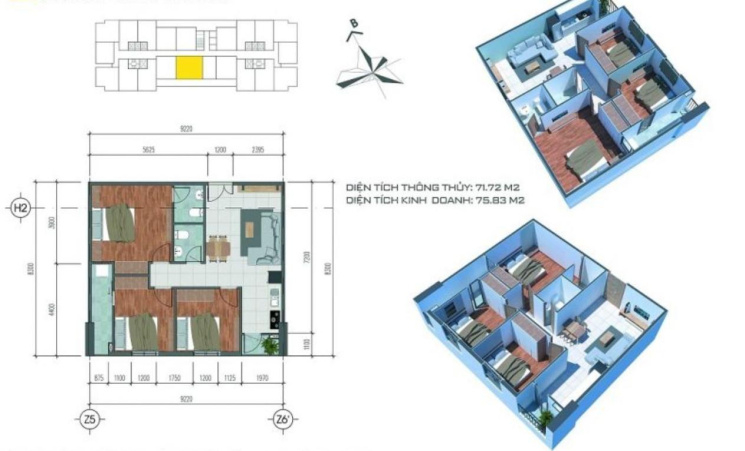 - Căn hộ 3 phòng ngủ 2 nhà vệ sinh có diện tích 75m2.