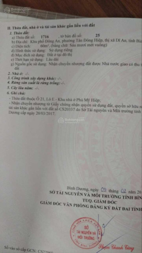 - Chính chủ bán đất tại KDC Phú Mỹ Hiệp, Tân Đông Hiệp Dĩ An, Đường N2. - Diện tích 60m2, mặt tiền 4m. - Sổ hồng riêng. - Giá 2 tỷ 2. LH Tùng 0968827512.