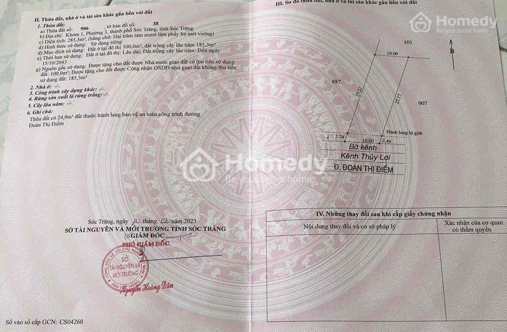 Bán đất đường Đoàn Thị Điểm, phường 3, tp Sóc Trăng