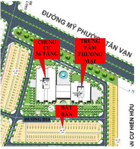 - Mặt tiền đường D14 đối diện trung tâm thương mại và 2 block chung cư cao 36 tầng, không dính trụ điện hố ga.