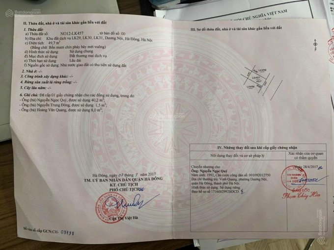 - Chính chủ gửi bán đất dịch vụ Dương Nội, P. Dương Nội, Q. Hà Đông.