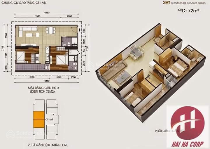 + Căn 72m2 tòa CT1B. 2pn 2VS full nội thất, ban công Đông Nam. Giá 11tr.
