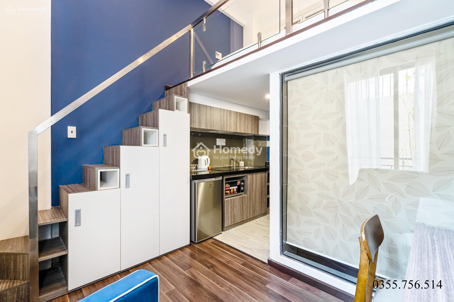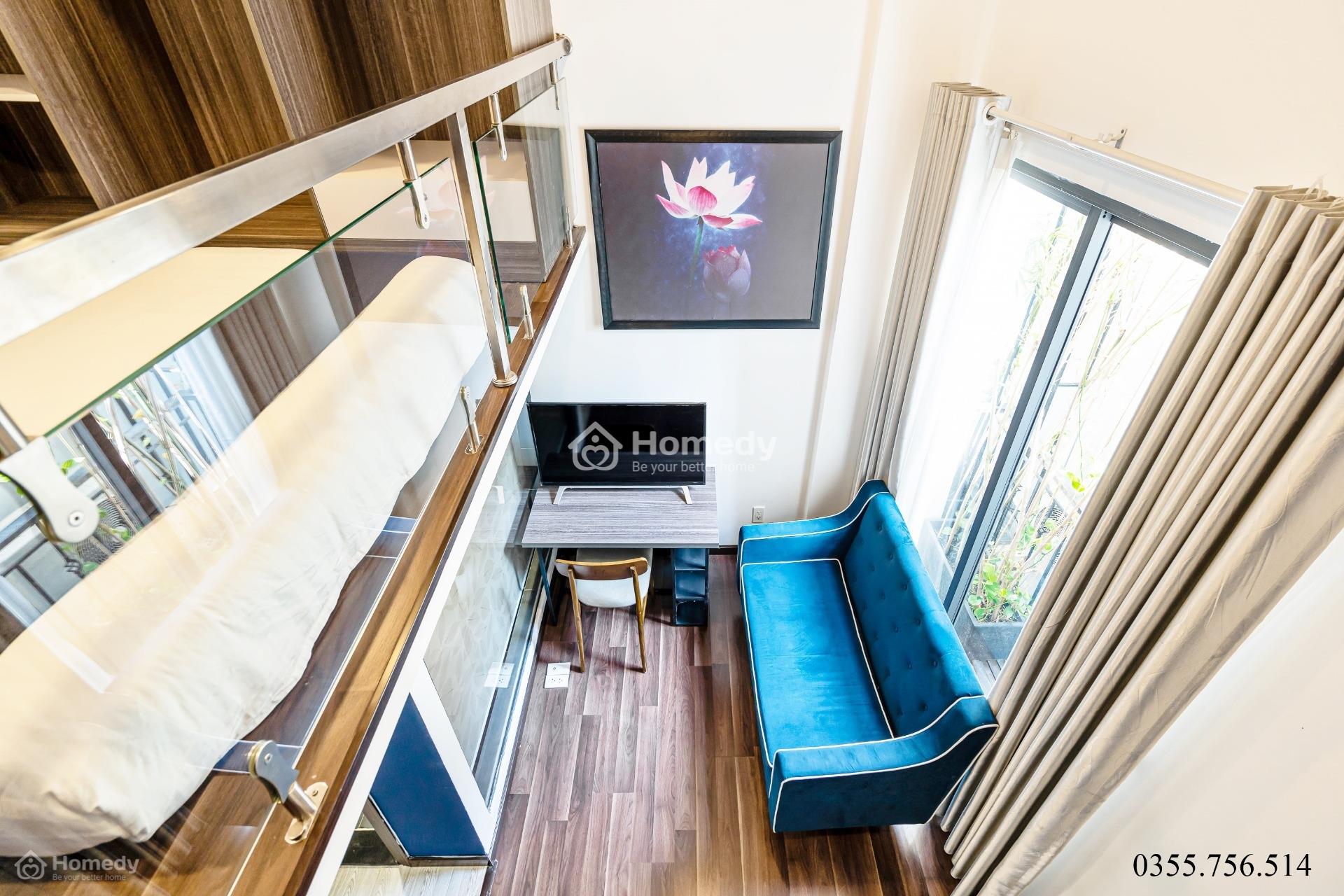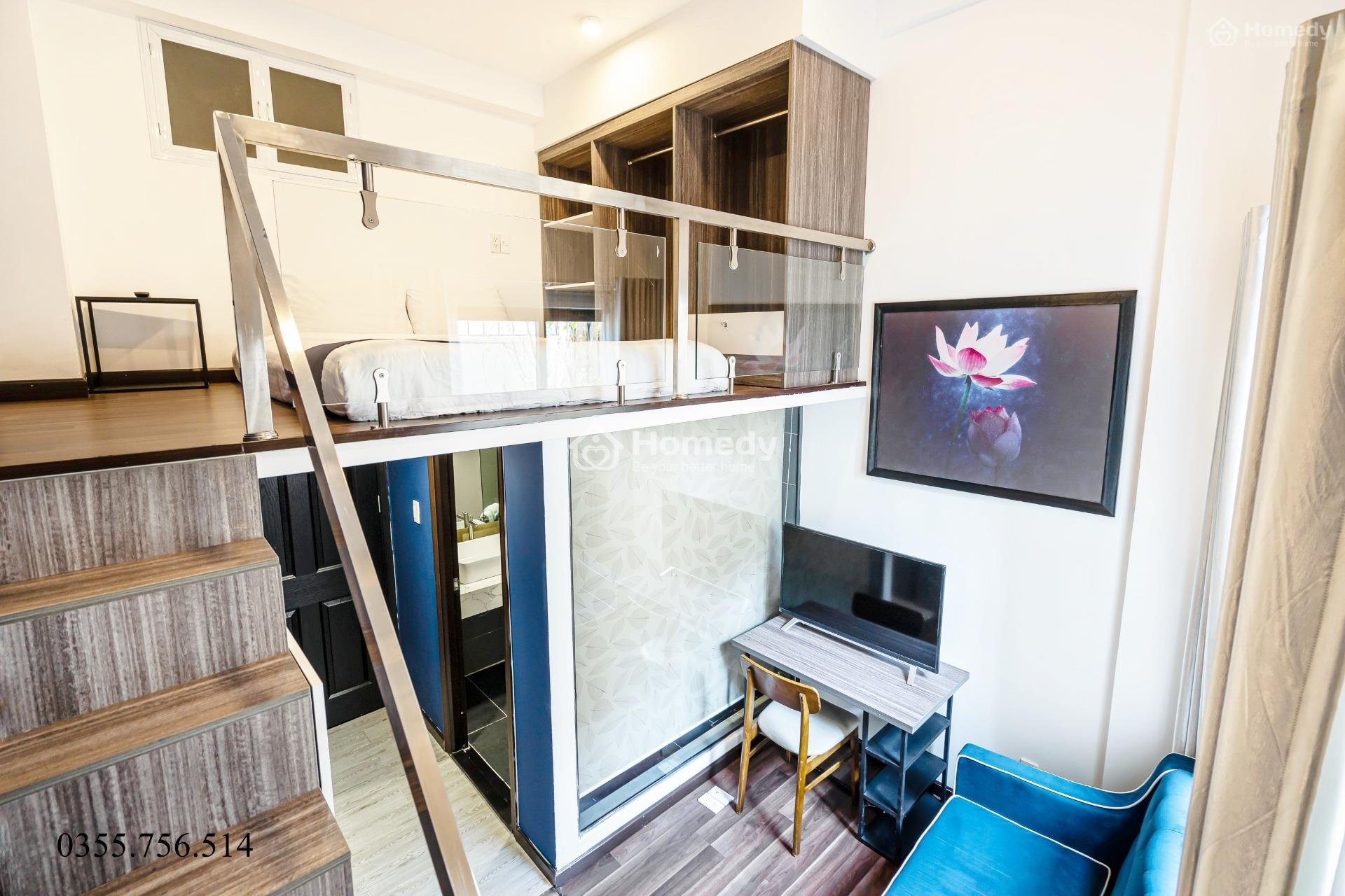 🔅 Căn hộ dịch vụ thiết kế gác lửng sang trọng rộng 30m2, có ban công rộng đẹp, trồng cây xanh tưới nước tự động, có gió mát.