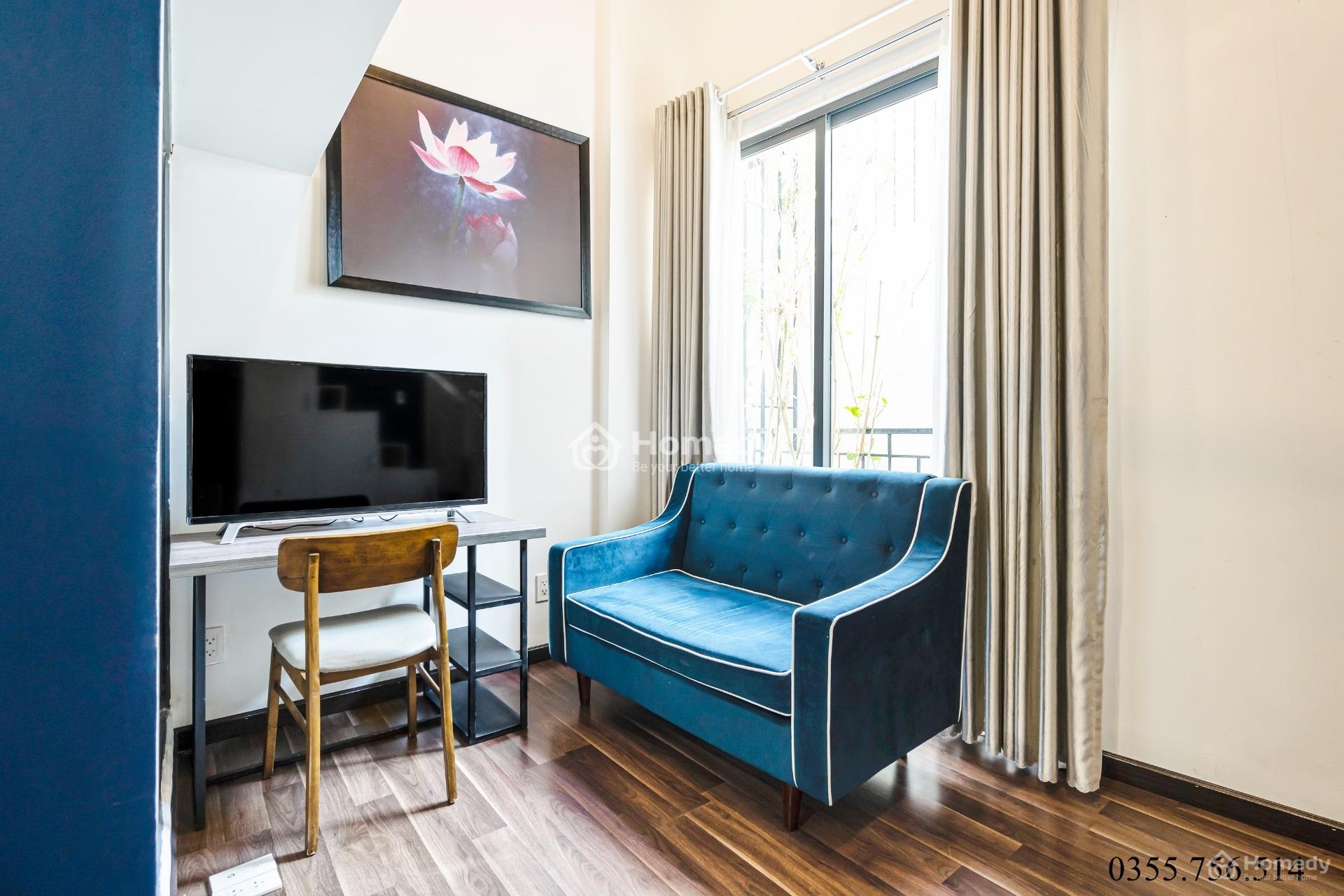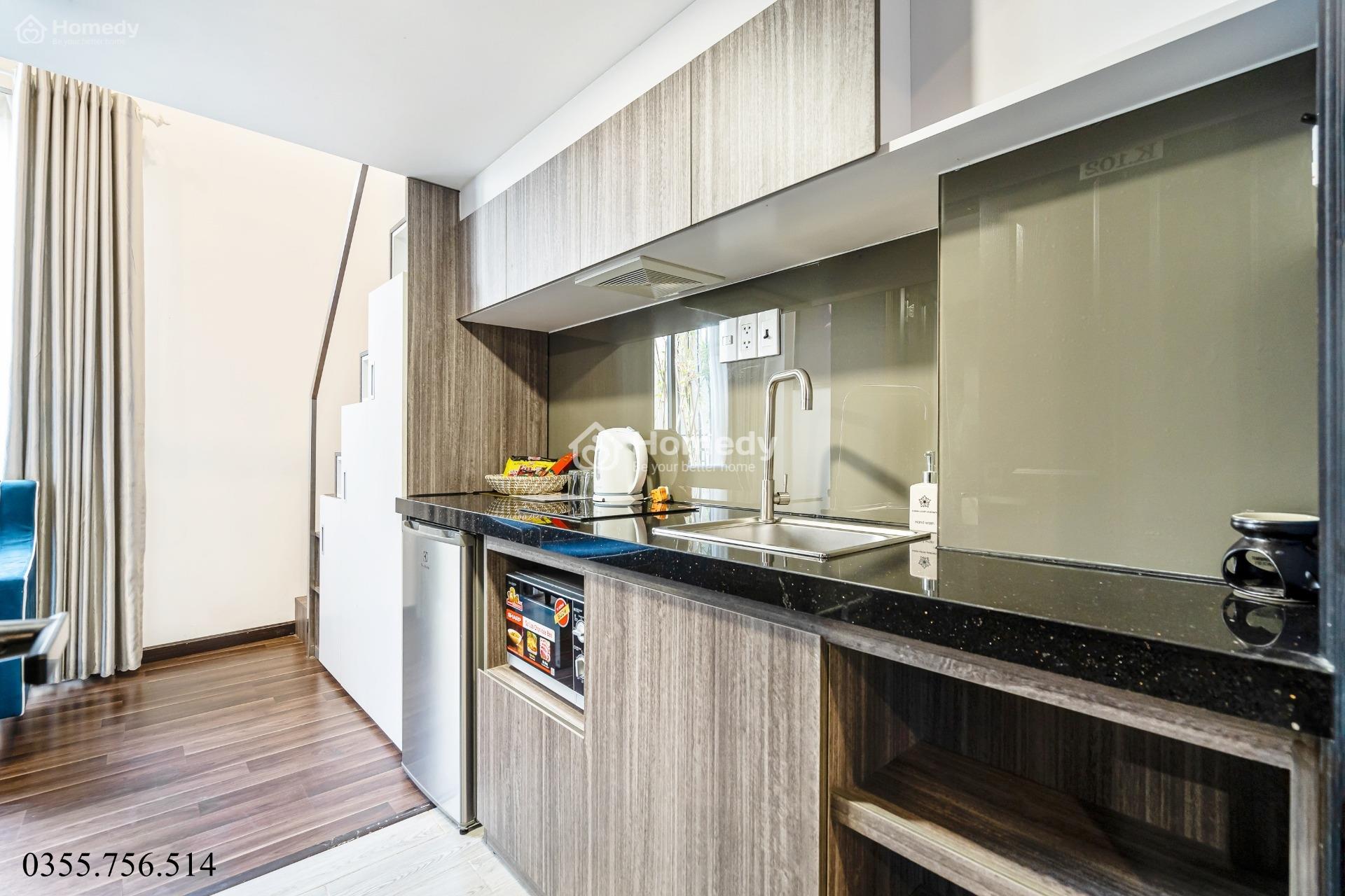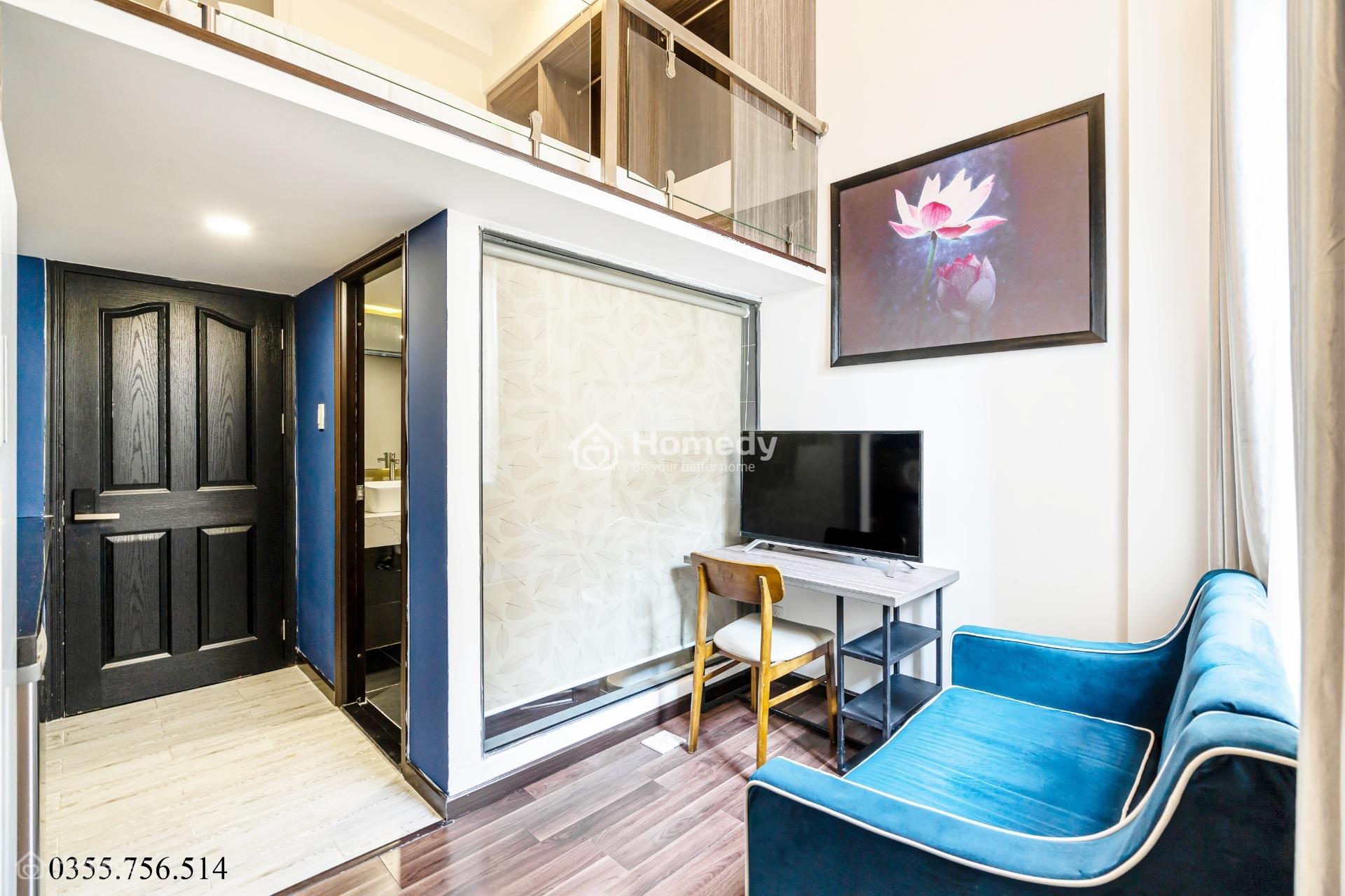 🔅 Căn hộ dịch vụ thiết kế gác lửng sang trọng rộng 30m2, có ban công rộng đẹp, trồng cây xanh tưới nước tự động, có gió mát.