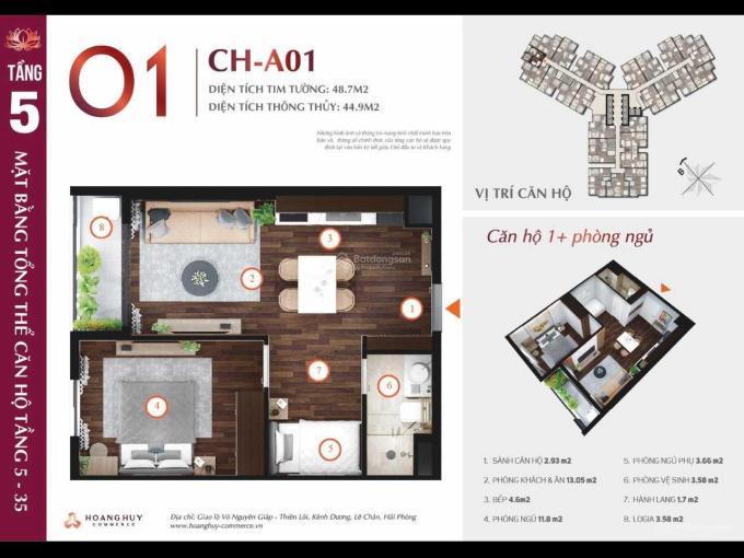 - Diện tích tim tường: 44.9m2.