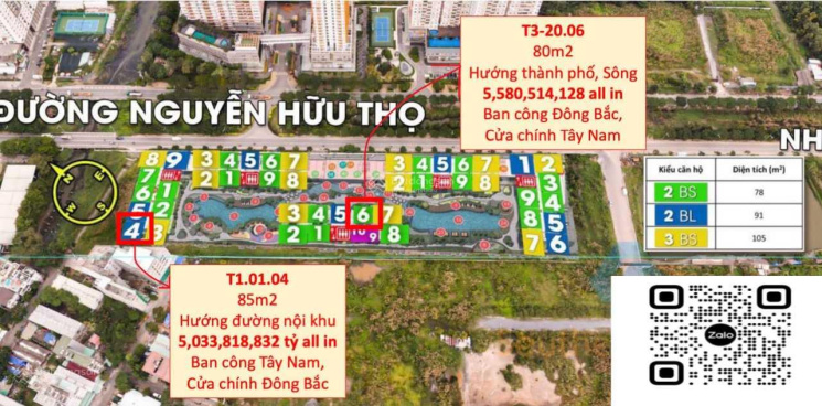 - Hướng ban công: Đông Bắc, hướng cửa chính: Tây Nam.
