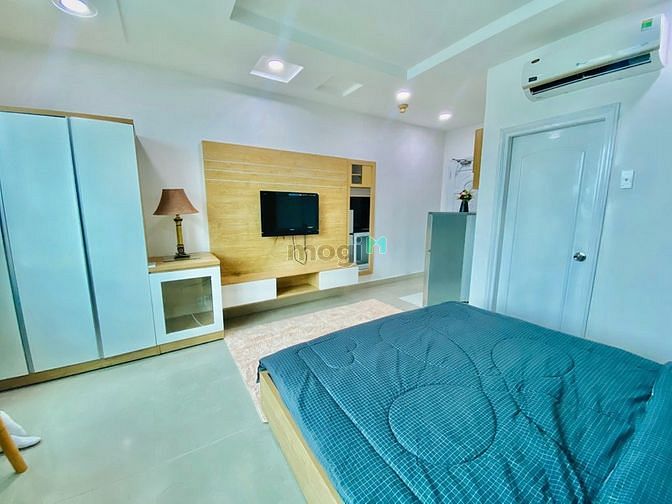 - Căn hộ trang bị nội thất cơ bản: TV + Máy lạnh + Nước nóng năng lượng mặt trời + Tủ quần áo + Bàn ăn + Kệ bếp có vòi rửa + Tủ lạnh + Giường + Nệm + tủ bếp trên và dưới + bếp điện + máy giặt riêng