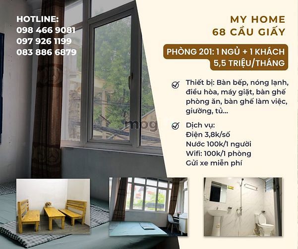 Cho thuê Căn hộ dịch vụ FULL ĐỒ Ngõ 68 Cầu Giấy/Ngõ 59 Quan Hoa