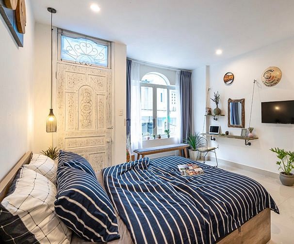 - Mỗi phòng được trang bị: Điều hòa, nóng lạnh, tủ lạnh, máy giặt, giường, táp đầu giường, bàn phấn, tủ quần áo, bàn ăn, tủ bếp, hút mùi, bếp từ