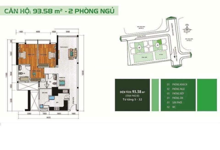 Diện tích: 94m2.