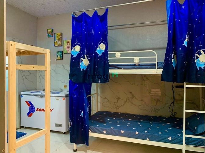 -Trang bị giường tầng cao cấp, có tủ cá nhân, bàn học, nệm và drap mới, tủ sắt đựng đồ cá nhân có chìa khoá riêng.
