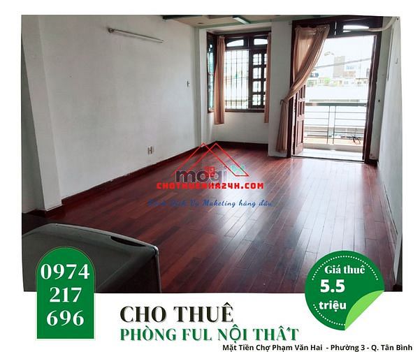 Cho thuê Phòng Full Nội Thất 30m2 MT Chợ Phạm Văn Hai, P.3, Q.Tân Bình
