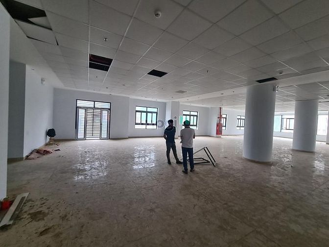 Đã hoàn thiện hệ thống trần thạch cao thả, hệ thống đèn chiếu sáng, điều hòa âm trần, WC khép kín