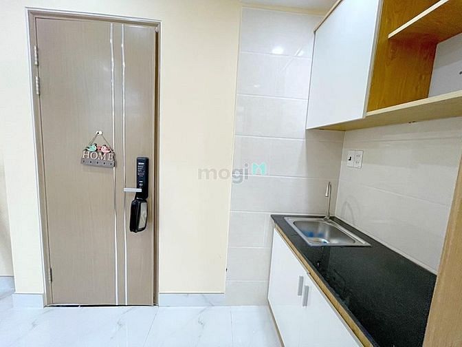 - Khu bếp có bàn bếp, tủ bếp, bếp từ, tủ lạnh, hút mùi, đầy đủ ánh sáng, gió và không khí vào phòng.