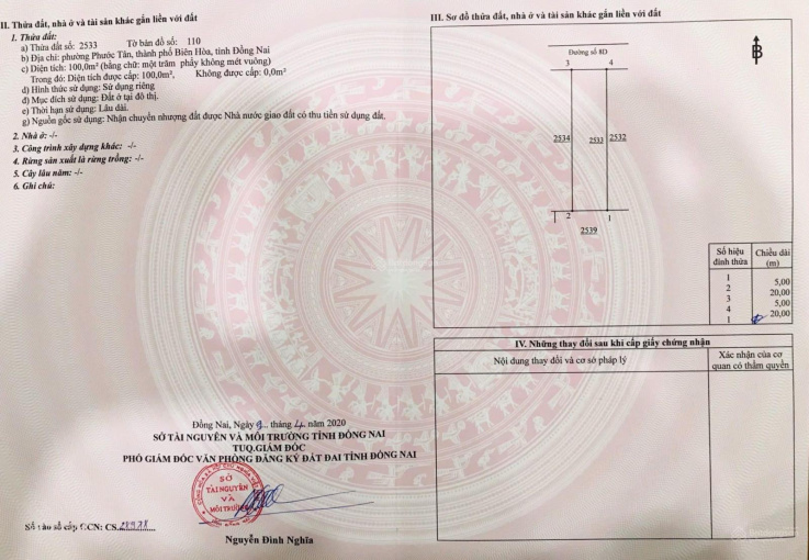 - Diện tích ngan 5 dài 20 (100m2) giá bán 1,6 tỷ/ nền. Còn thương lượng.