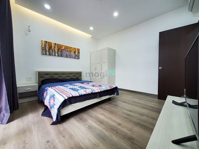 - Khu bếp có bàn bếp, tủ bếp, bếp từ, tủ lạnh, hút mùi, đầy đủ ánh sáng, gió và không khí vào phòng.