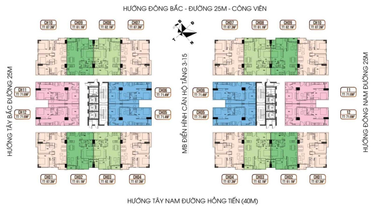 * Diện tích căn hộ rất đa dạng có từ 71m2 - 82m2 - 87m2 - 102m2 - 120m2 phù hợp nhu cầu nhiều gia đình.