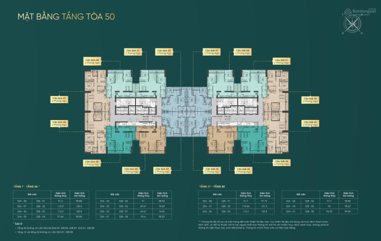 - 2PN diện tích 89,7m2 - 99,6m2.