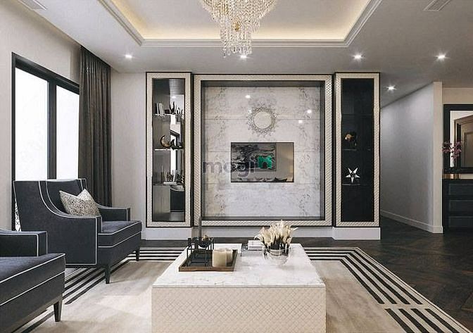 + Nội thất cơ bản: Gồm điều hòa các phòng, tủ bếp, nóng lạnh, sàn, trần thạch cao, hệ thiết bị vệ sinh chiếu sáng đầy đủ, rèm,... Một số căn có thể có thêm giường tủ và bàn ghế.