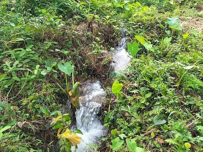 - Thế đất bằng phẳng,trên đất có những viên đá được thiên nhiên tạo hoá như những hình non bộ, đất có ao nhỏ , có suối chảy quanh năm trong đất .