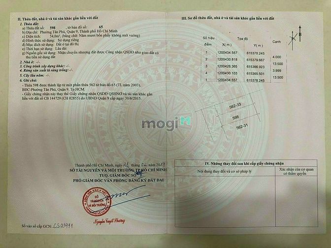 Đất thổ cư hẻm 4 đường 100A Cầu Xây P Tân Phú Quận 9 HCM