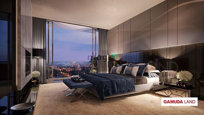 Căn hộ nằm ngay trung tâm Đại Lộ Gamuda rộng 62m, cạnh thác nước và hồ bơi.