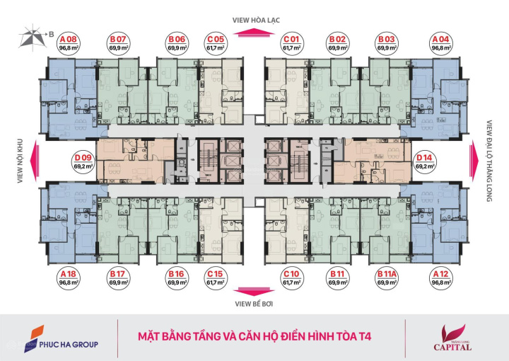+ Diện tích: 61,7 - 69,2 - 69,9 - 96,8 m2.