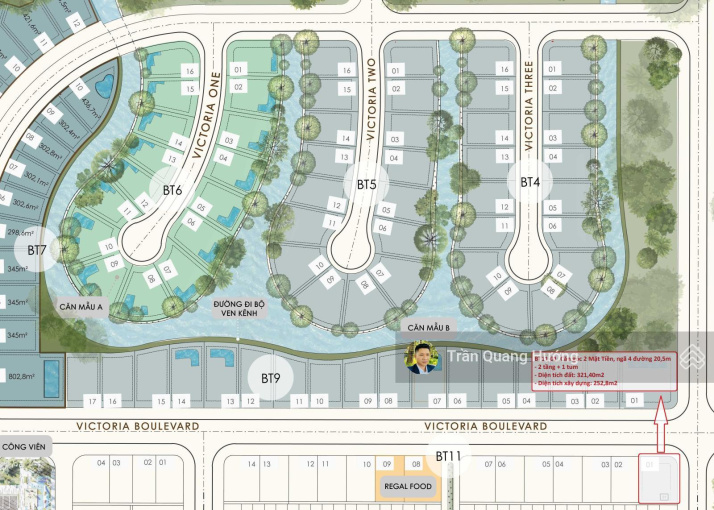 Căn góc 2 mặt tiền giá: 11, xx tỷ dự án Regal Victoria.
