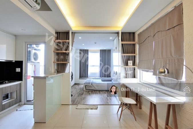 - Diện tích 49m2, 1 phòng ngủ, có sẵn nội thất chỉ mang vali vào ở.