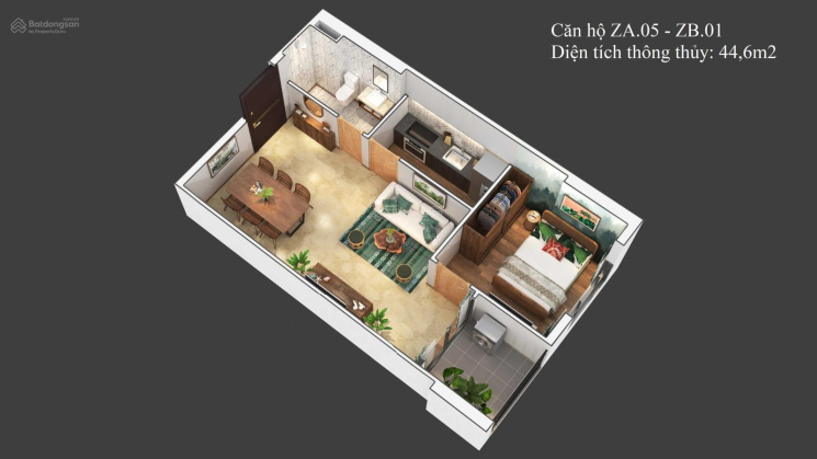 + 1 ngủ 1wc: 45m2 - Giá từ 2.1 tỷ