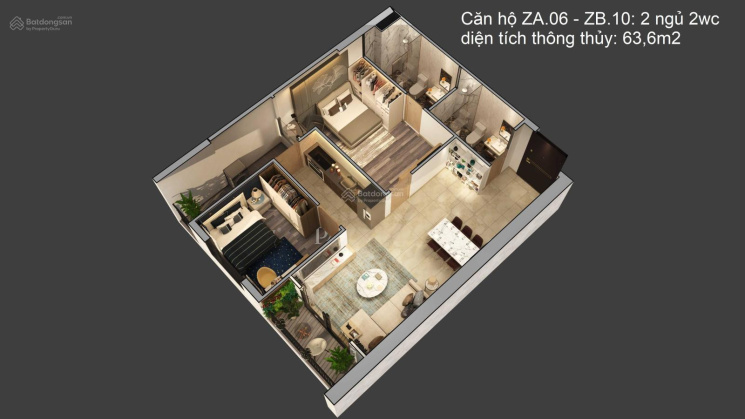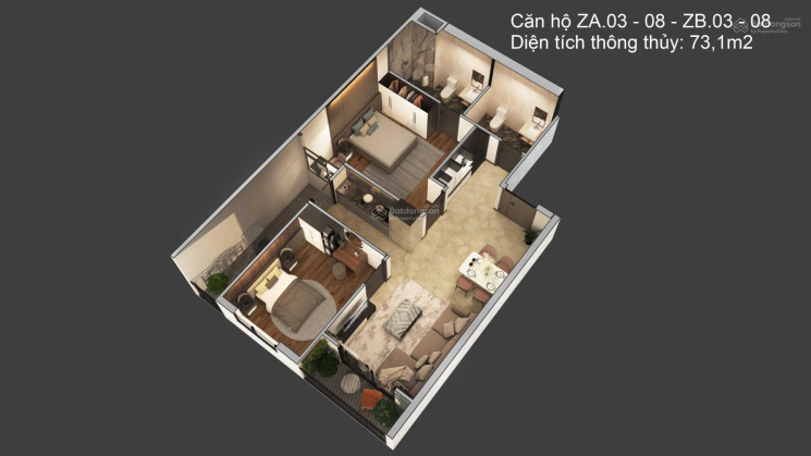 + 2 ngủ 2wc: 64m2 - 73m2 - 78m2 - Giá từ 3 - 3,7 tỷ.