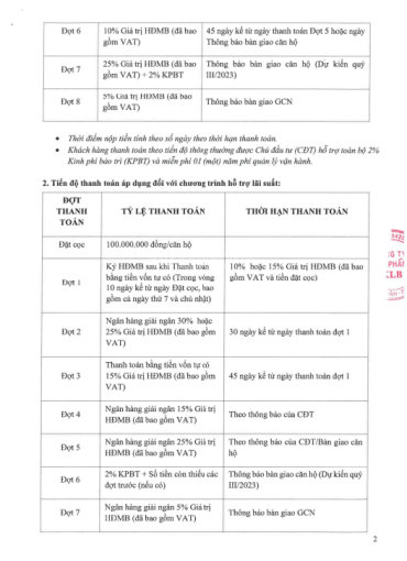 + Hỗ trợ lãi suất 0%, ân hạn gốc đến khi nhận nhà. Và 12 tháng với căn 114m2.