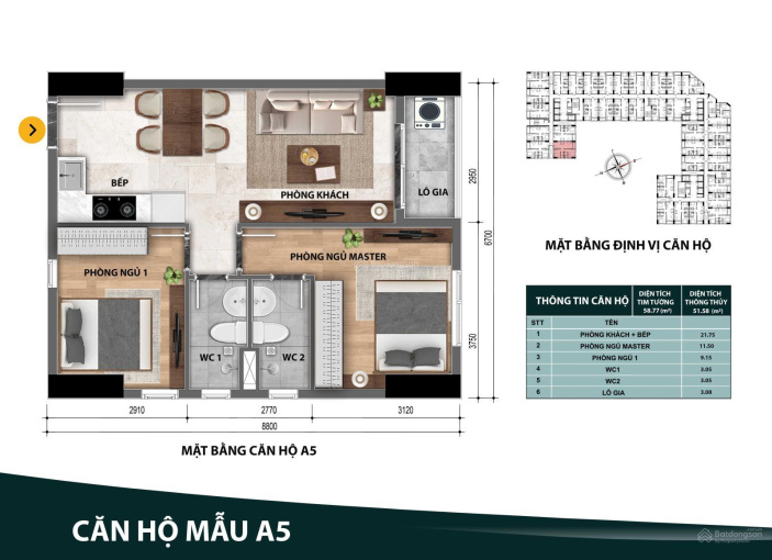 - Căn 2PN - 2WC 51m2 giá 1tỷ655. Trả trước 20%~ 331tr ký ngay HĐMB.