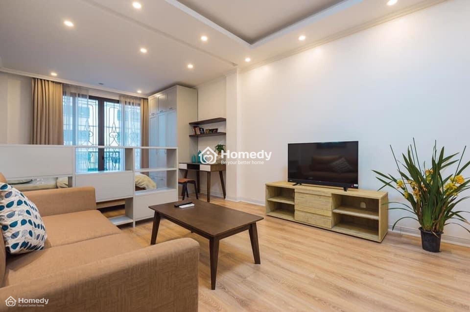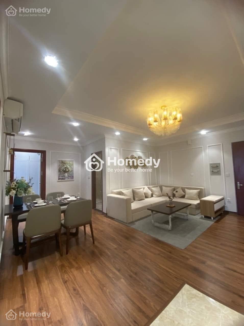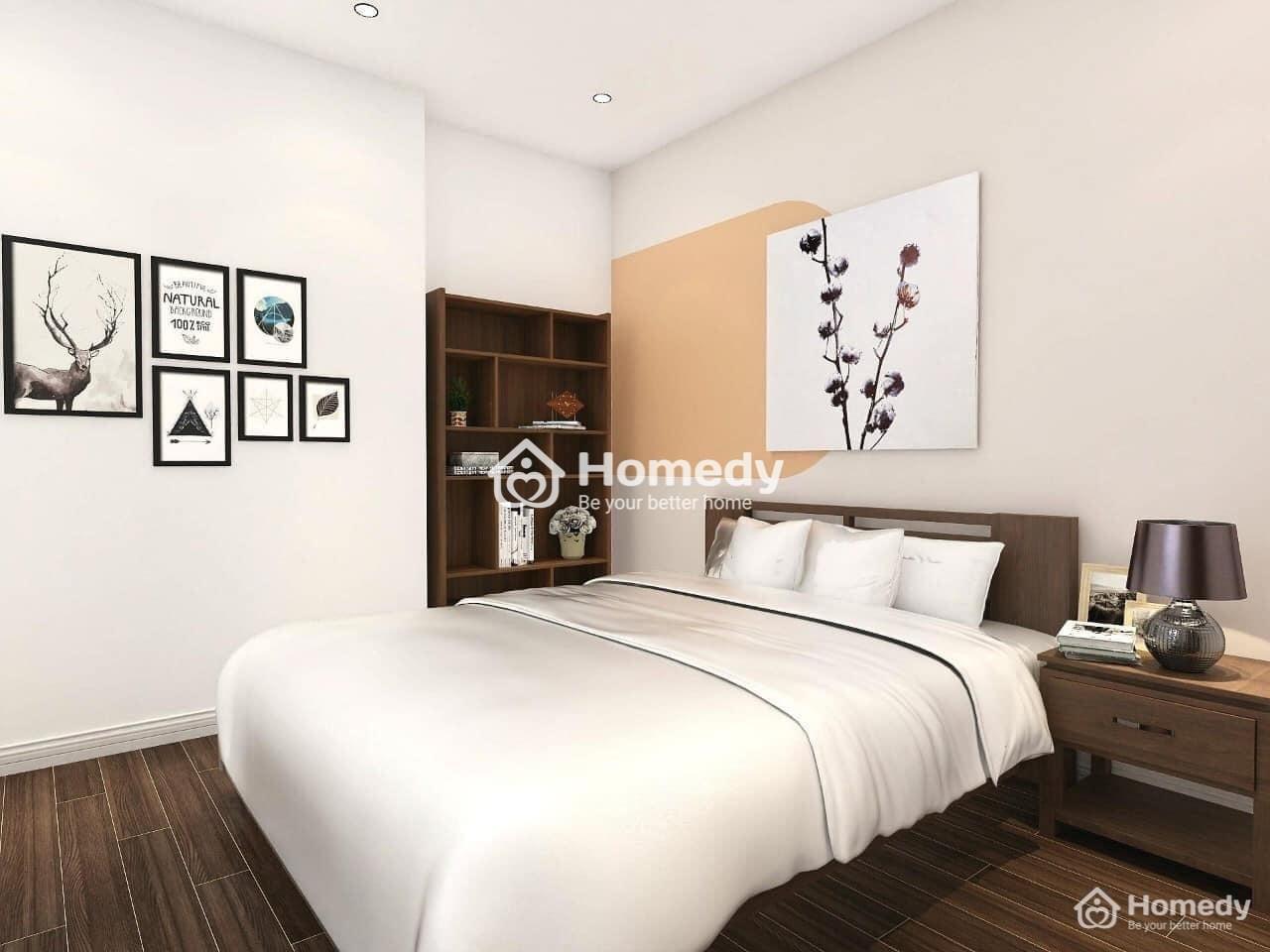 Nội thất: Sàn gỗ, tủ bếp, trần thạch cao, thiết bị vệ sinh, bình nóng lạnh, đèn led.