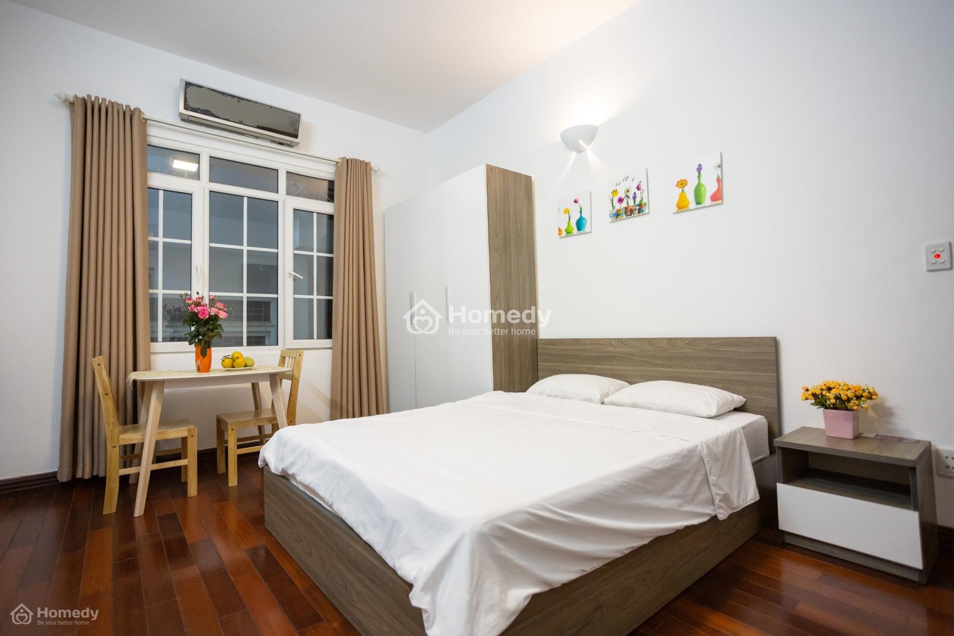 Giảm ngay 1 triệu/tháng, căn hộ đủ đồ, 1 phòng ngủ, full nội thất, sàn gỗ, ở Hoàng Ngân