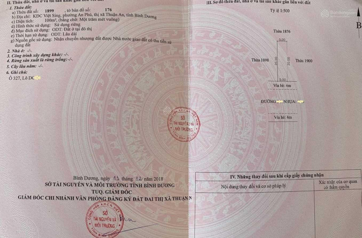 - Ngang 5 x 20m = 100m2 thổ cư full 2 sổ đỏ chính chủ cầm tay.