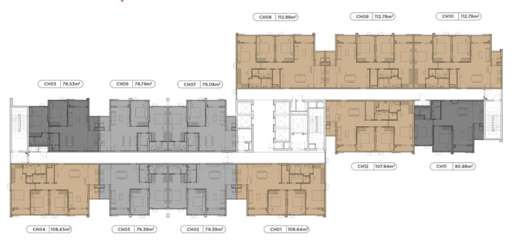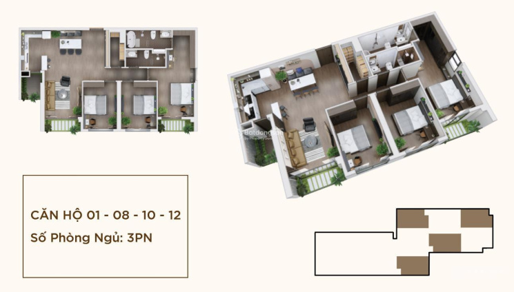 Căn 3PN: 107 - 112m2.