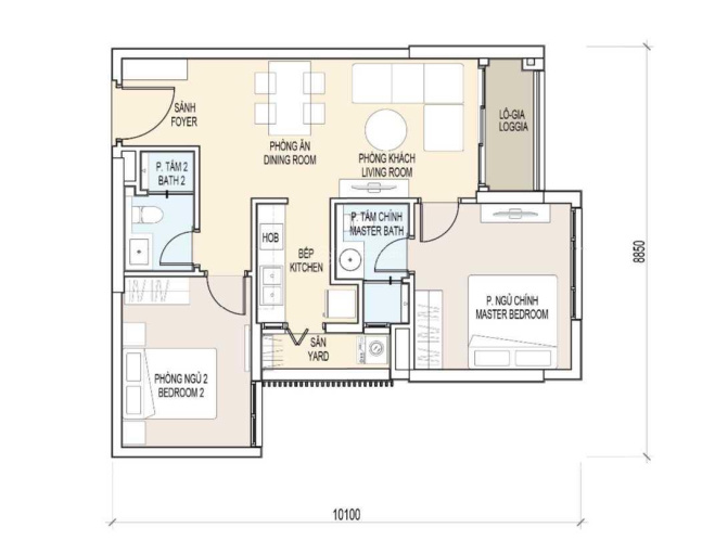 2PN - Diện tích 62 - 65 - 68 - 71 - 76 - 84 - 94m: Giá từ 5ty - 8.5 tỷ.