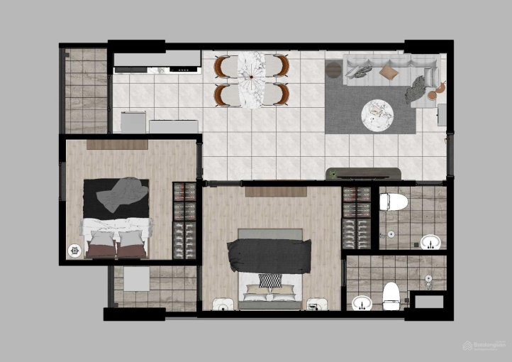- Diện tích căn 2 PN: 60.5m2 - 62.5m2.