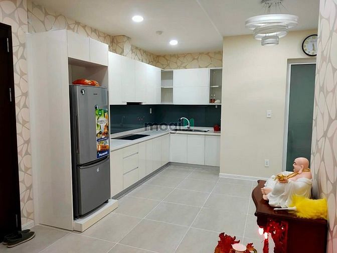 Căn hộ đã thay khóa vân tay, dán tường toàn bộ nhà, trang trí kính bếp, rèm cửa dày chất liệu chống nắng vừa mới đặt may