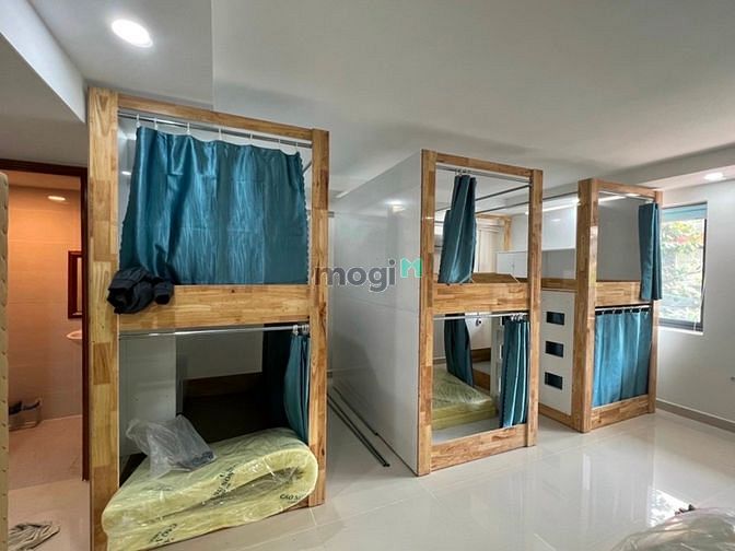 - Giường rộng rãi thoải mái, trang bị rèm che kín đáo, tạo cảm giác riêng tư.