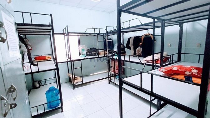 Dạng phòng ký túc xá: Giường tầng, phòng máy lạnh, ổ cắm điện ngay giường, tủ cá nhân, phòng sạch sẽ, vệ sinh thường xuyên, lối vào rộng rãi.