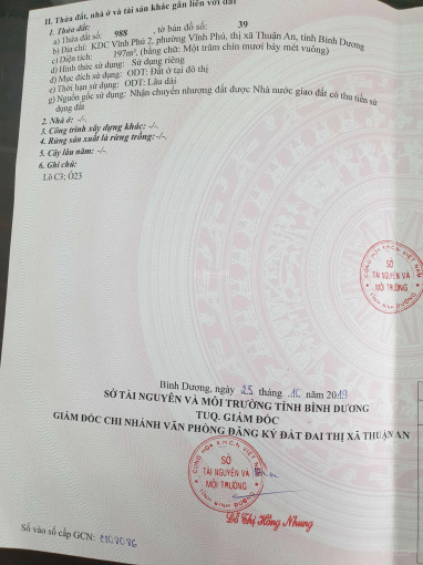 Lô góc biệt thự tuyệt đẹp nằm trên trục chính đường số 7 và đối diện công viên thuộc KDC Vĩnh Phú 2, 2 mặt tiền hướng Đông, và hướng Nam vỉa hè 3.5m, vị trí tuyệt đẹp để an cư, hoặc mặt bằng kinh doanh mở quán cà phê nhà hàng. Khách thiện chí liên hệ chủ đất: Anh Chinh: 0913145777.
